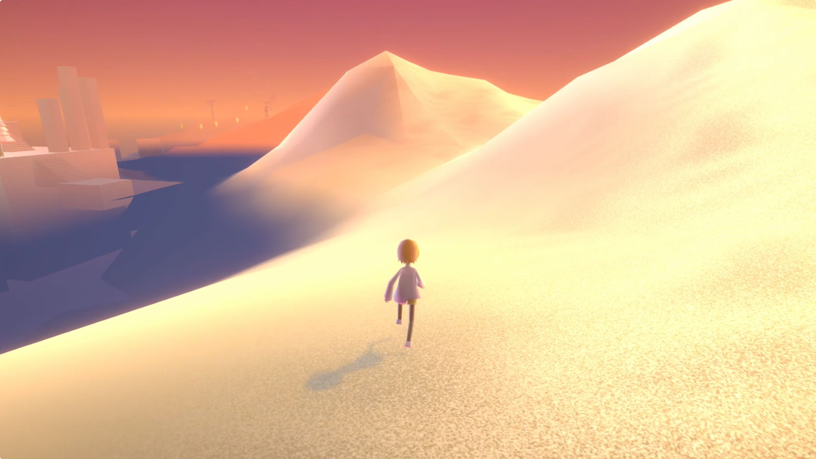 美しい砂漠と言えば 風ノ旅ビト というゲームを思い出す。あれほどではないが、ちょっとそれを彷彿とさせる程度の見栄えにはなっている気がする。